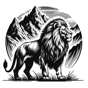 Rugged Lion With Mountains