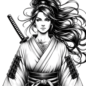 If you are into darker aesthetics, you could opt for a skull-masked samurai warrior with his katana or a haunting silhouette in bold lines.